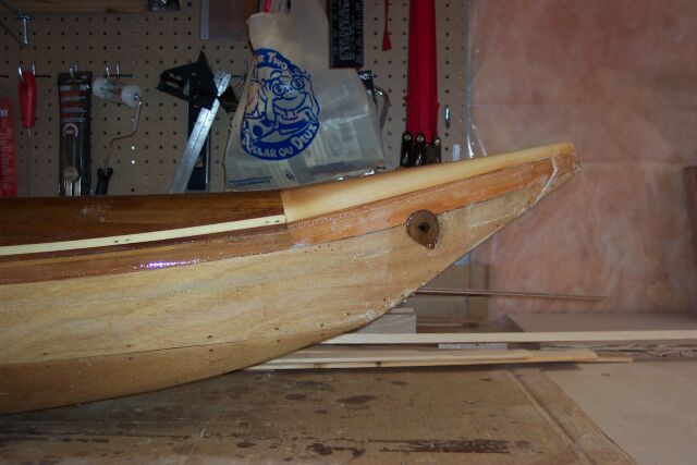 This time it was putting the painters ring in... my mistake, well a combination of Ignorance and Stuborness. Why ignorance, well a painters ring is basiically a hole that goes through the hull, to tie ropes to. So you have to cut a hole in the kayak. I went and bought some dowel (which is drilled out, and run through the hole) I knew the diameter was bigger than any drill bit I had, so I grabed on to match... I bought a spade bit.